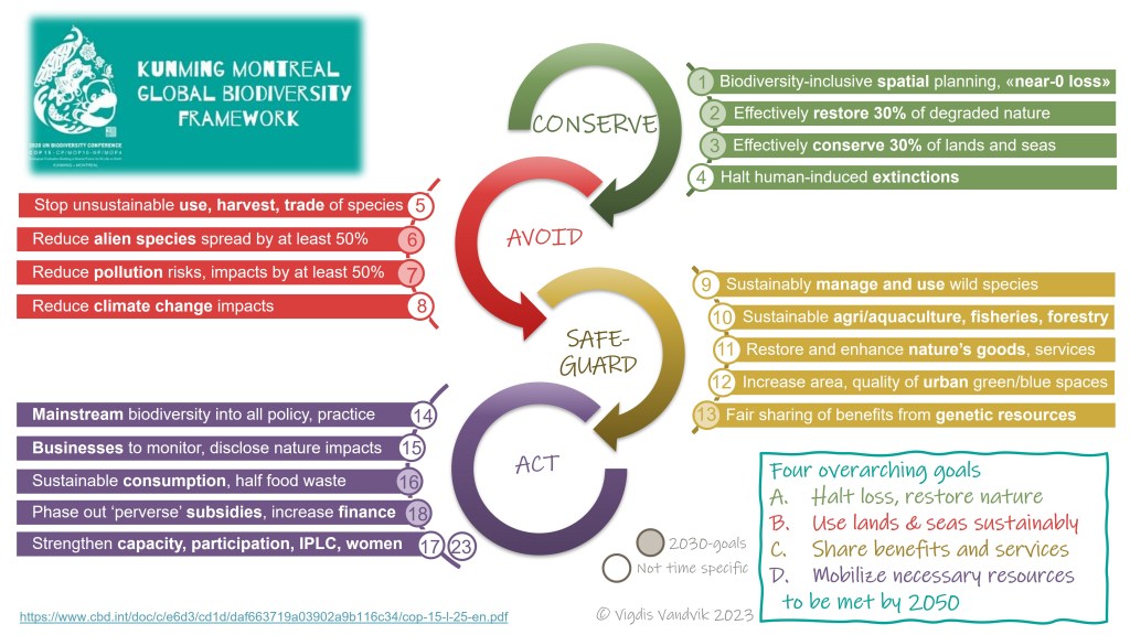 To advance toward the 2050 goals, the framework includes 23 action-oriented targets to be achieved by 2030. These targets address critical areas such as ecosystem conservation, restoration, sustainable resource management, pollution reduction, and financing.