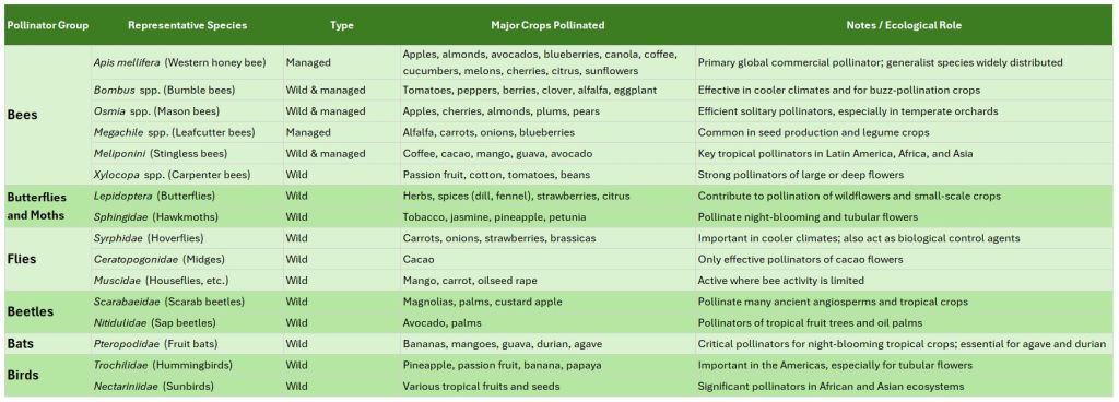 Pollination is a key regulating ecosystem service that directly influences food security, forest regeneration, and carbon sequestration. Approximately 75% of global food crops rely, at least in part, on animal-mediated pollination. In natural ecosystems, pollinators maintain plant reproductive success, promote genetic diversity, and enhance resilience to environmental stressors.