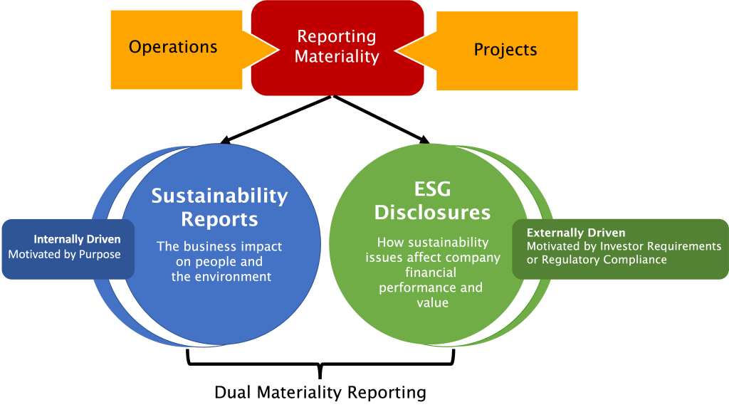 There are two main perspectives on materiality in sustainability reporting. The financial materiality lens focuses on ESG factors that can influence enterprise value or financial performance. This approach is commonly used in frameworks like TCFD, SASB, and ISSB.
