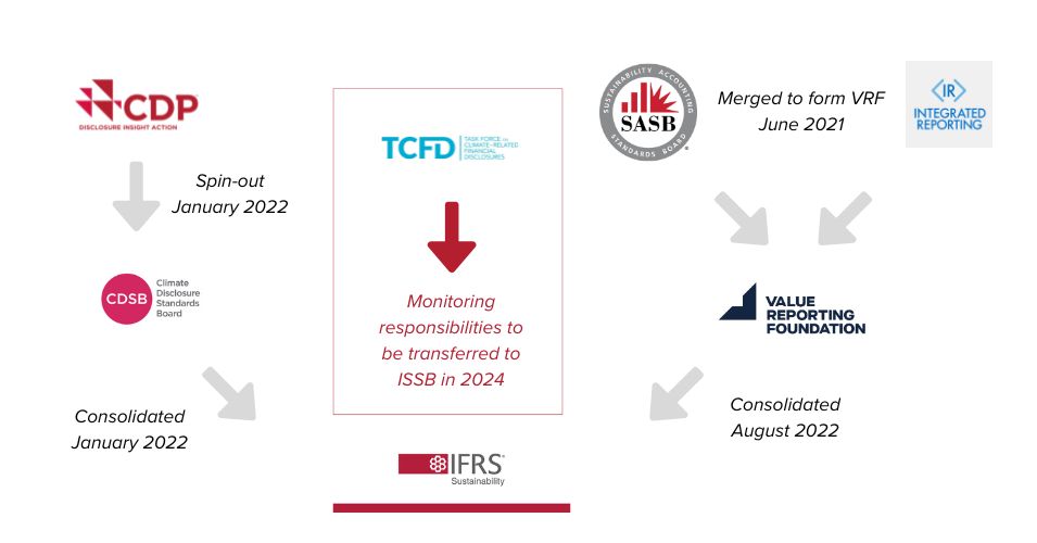 Crucially, the Financial Stability Board transferred responsibility for monitoring climate disclosures from TCFD to the ISSB, signaling the formal transition of authority .
